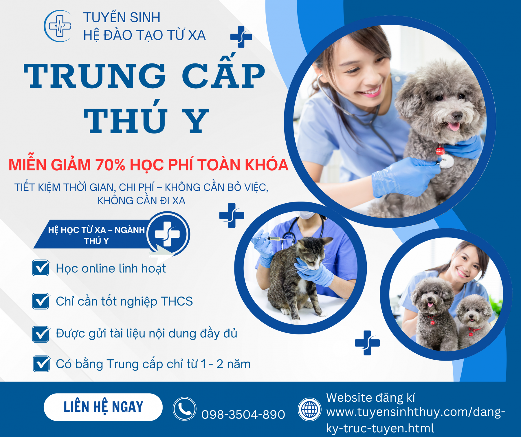 Tuyển sinh Trung cấp Thú y từ xa học thú y online chính quy Giảm 70 phần trăm học phí Học online linh hoạt Nhận bằng Trung cấp Thú y sau 1 đến 2 năm